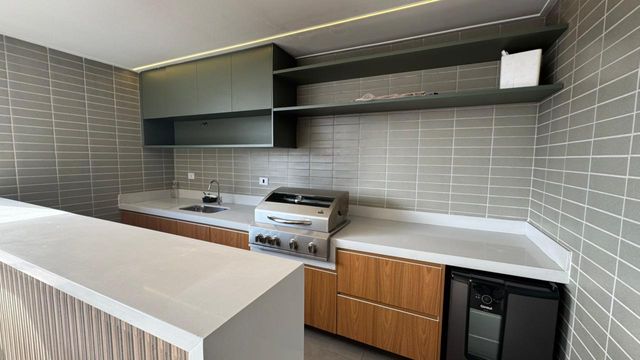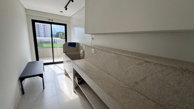 A sacada gourmet com vista para o mar é o grande destaque, ideal para momentos especiais. Possui ainda banheiro social e área de serviço.