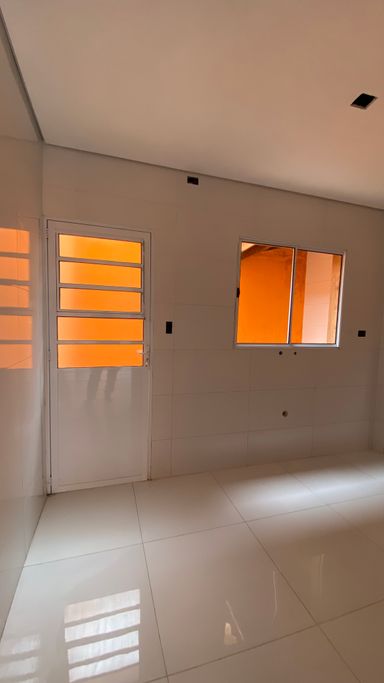 2 quartos, sala, cozinha, lavabo, banheiro social, área de serviço com quintal maior perto de escolas, padarias...