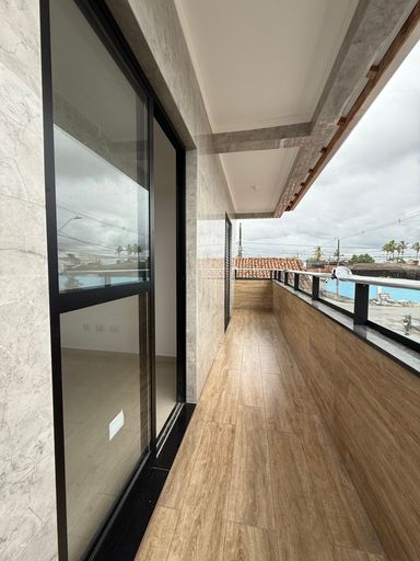 Casa sobreposta alta, individual, com sacada gourmet, churrasqueira a carvão e um lindo acabamento. Com 130 metros de aérea útil.
