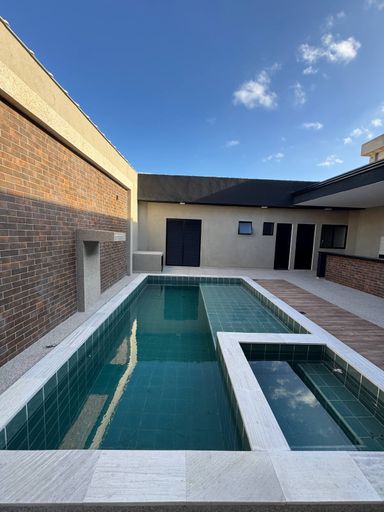 ✨ Na área externa, o lazer é garantido! A casa conta com uma piscina com prainha e jacuzzi, perfeita para relaxar e curtir momentos especiais em família. O espaço gourmet é ideal para confraternizações, enquanto a edícula com suíte de apoio oferece versatilidade — podendo ser utilizada como quarto extra, home office ou área de lazer. Além disso, possui banheiro, lavabo, lavanderia isolada e corredores laterais, garantindo total privacidade e praticidade no dia a dia.