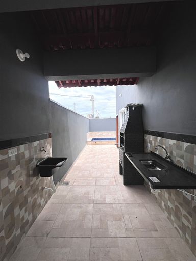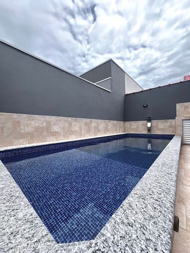 02 dormitórios (sendo 01 suíte)+ wc social, sala, cozinha, área de servi ço , piscina, 05 vagas de garagem (sendo 01 coberta) , portão de alumí nio, churrasqueira